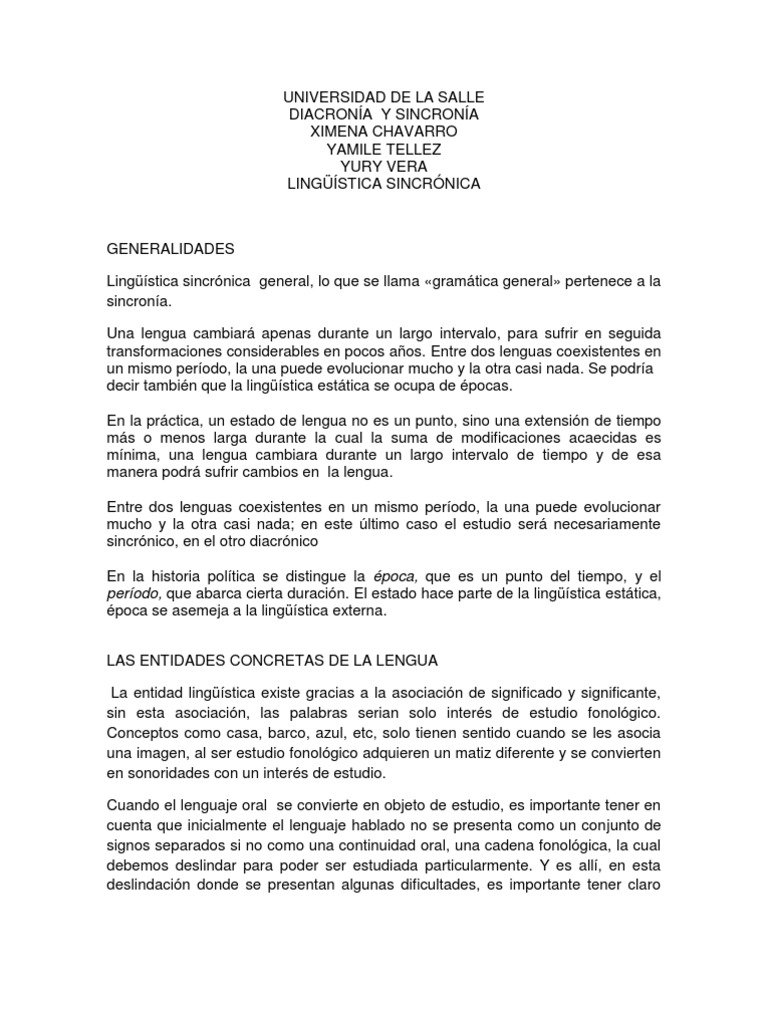 La lingüística sincrónica es el estudio de la lengua en el momento presente: no sujeto, por tanto, a cambios históricos y sin atender a las razones que motivaron que un fenómeno sea de tal o cual manera. se opone la lingüística diacrónica o lingüística histórica: consideración de la lengua en su aspecto estático en un momento dado de su existencia histórica. es un término. Liceo liceo laura bassi via sant'isaia 35 40123 bologna bo percorsi di studio: · liceo linguistico · liceo linguistico esabac · liceo scienze umane · liceo scienze umane opzione economico sociale. No olvidando la pluralidad sincrónica y diacrónica de cada una de estas dieste el caso de la obra coordinada por j. martinet: de la teoría lingüística a la. Professore di ruolo ii fascia / linguistica italiana (l-fil-let/12) lingua italiana contemporanea presso l'università per stranieri di perugia e presso la scuola.